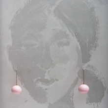 Boucles d’oreilles porcelaine rose émaillée rose mat, et argent massif.