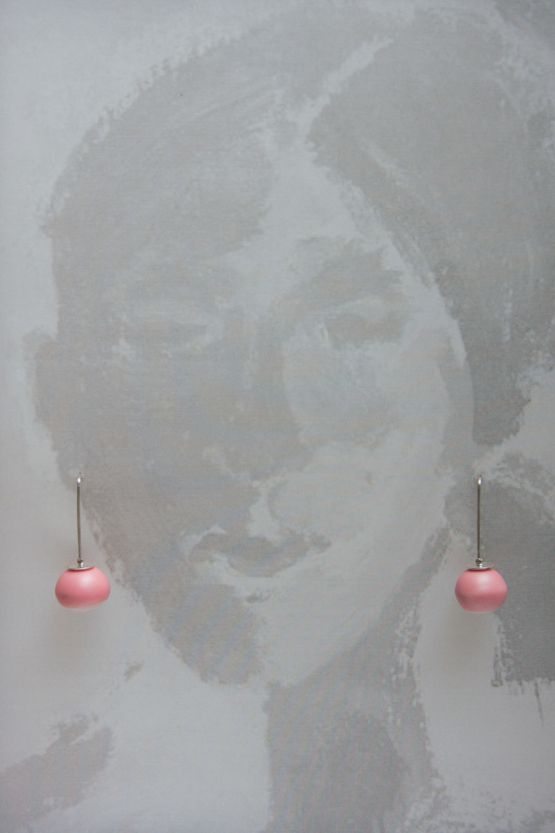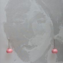 Boucles d’oreilles porcelaine émaillée rose mat, et argent massif.