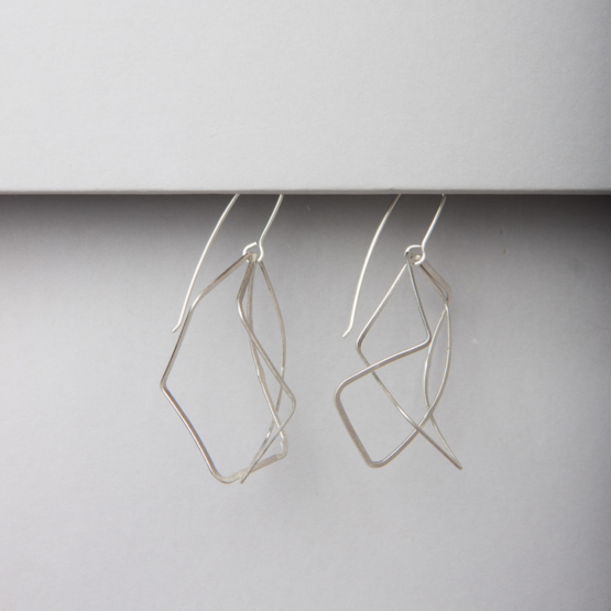Deux formes identiques en argent massif qui s’emboîtent tout en étant décalées.