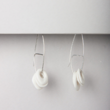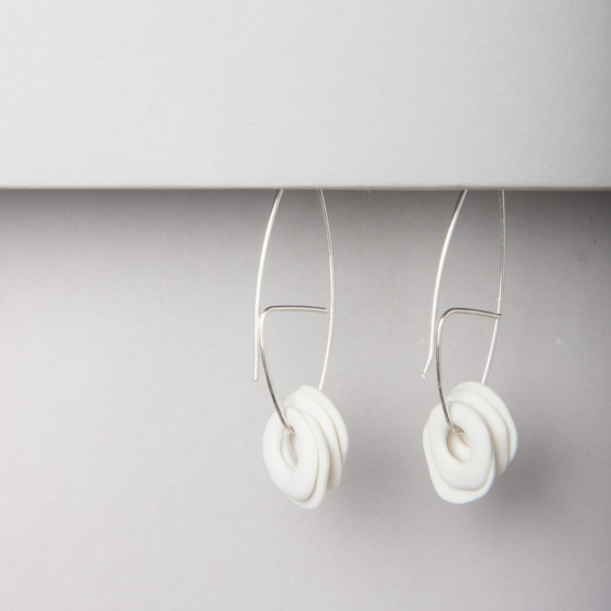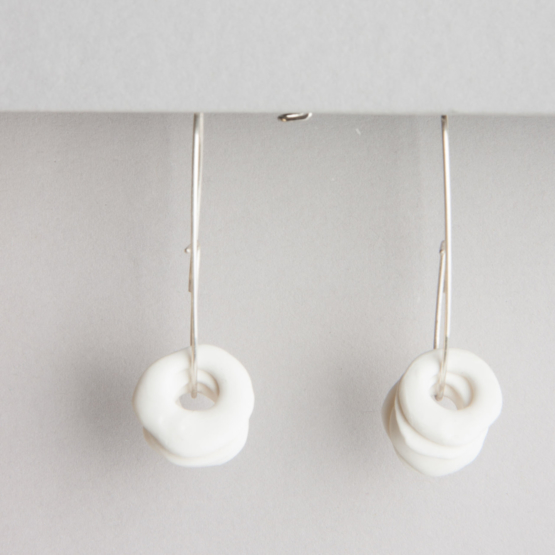 Petits anneaux de porcelaine sur une monture d’argent massif.