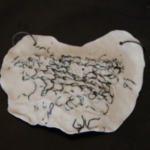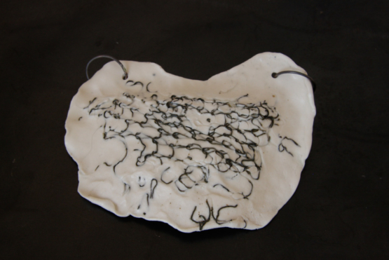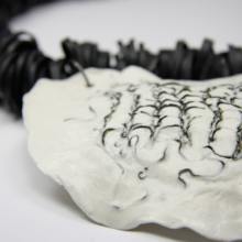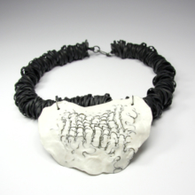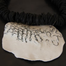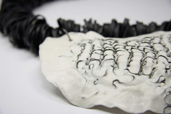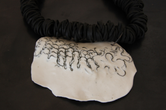 Collier Plastron. Porcelaine avec acier incrusté sur collier en caoutchouc.