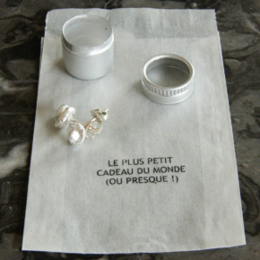 deux tubes de porcelaine émaillée jaune vif sont fixés sur un tube d’argent massif.